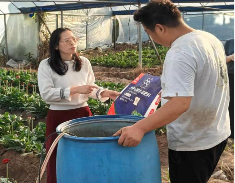 服务期间,针对秋冬季节低温对非洲菊生长的影响及水肥管理促进鲜切花高产稳产等问题,谢婉凤教授通过线上线下相结合的方式,为企业提供现场指导与解决方案。她重点指导温室大棚的温度调控,避免低温影响非洲菊的生长,同时详解水肥管理要领,强调土壤湿度应保持在“捏能成团、轻触即散”的状态,并注重基肥与营养元素的平衡施用,从而保障鲜花产量与花型美观。